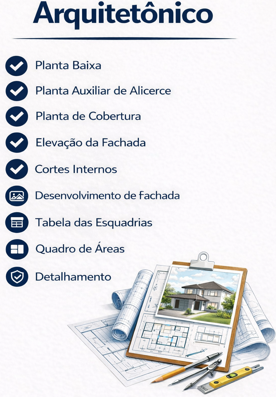 O projeto funciona como um guia da construção, orientando cada etapa da obra. Ele reduz imprevistos, evita desperdícios e ajuda você a economizar tempo e dinheiro.